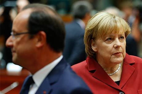 Hollande (esq.) e Merkel se encontraram ontem em Bruxelas: ambos pressionaram Obama após denúncias de espionagem